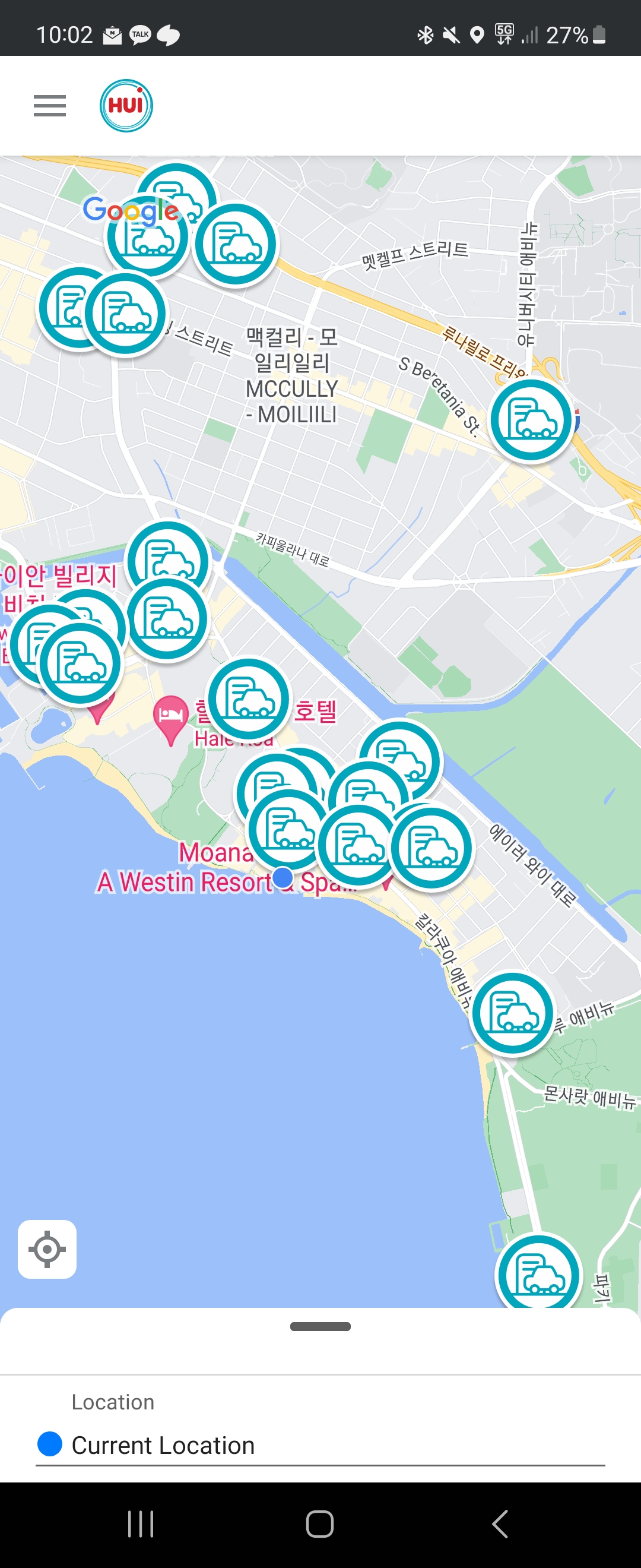 근처에 있는 HUI 차량을 나타내는 지도이며, 호놀룰루에서만 이용해봤는데 꽤나 많은 지역에 차량이 있다.