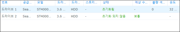 드라이브2 때문에 발생한 오류였는데, 상태가 "초기화 되지 않음"에서 바뀌지 않는다.