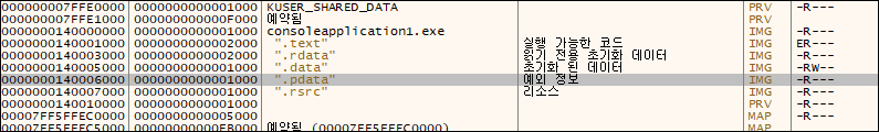 Windows에서 64bit 프로그램의 경우, 예외가 발생하면 RtlLookupFunctionEntry() API 함수를 호출하여 예외처리 루틴이 저장되어 있는 .pdata 섹션의 주소를 얻는다.
