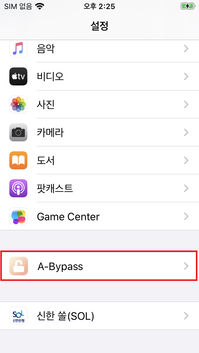 5. 아이폰 설정창에서 A-Bypass 확인 가능