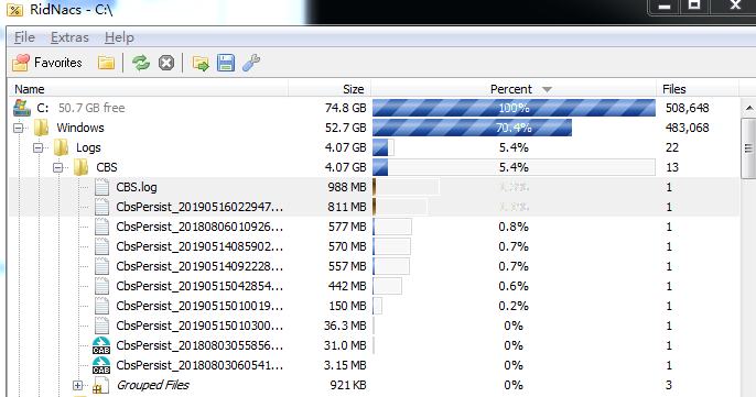 RidNacs라는 무료 툴인데, 각 폴더별 용량을 트리 형태로 쉽게 확인할 수 있다.