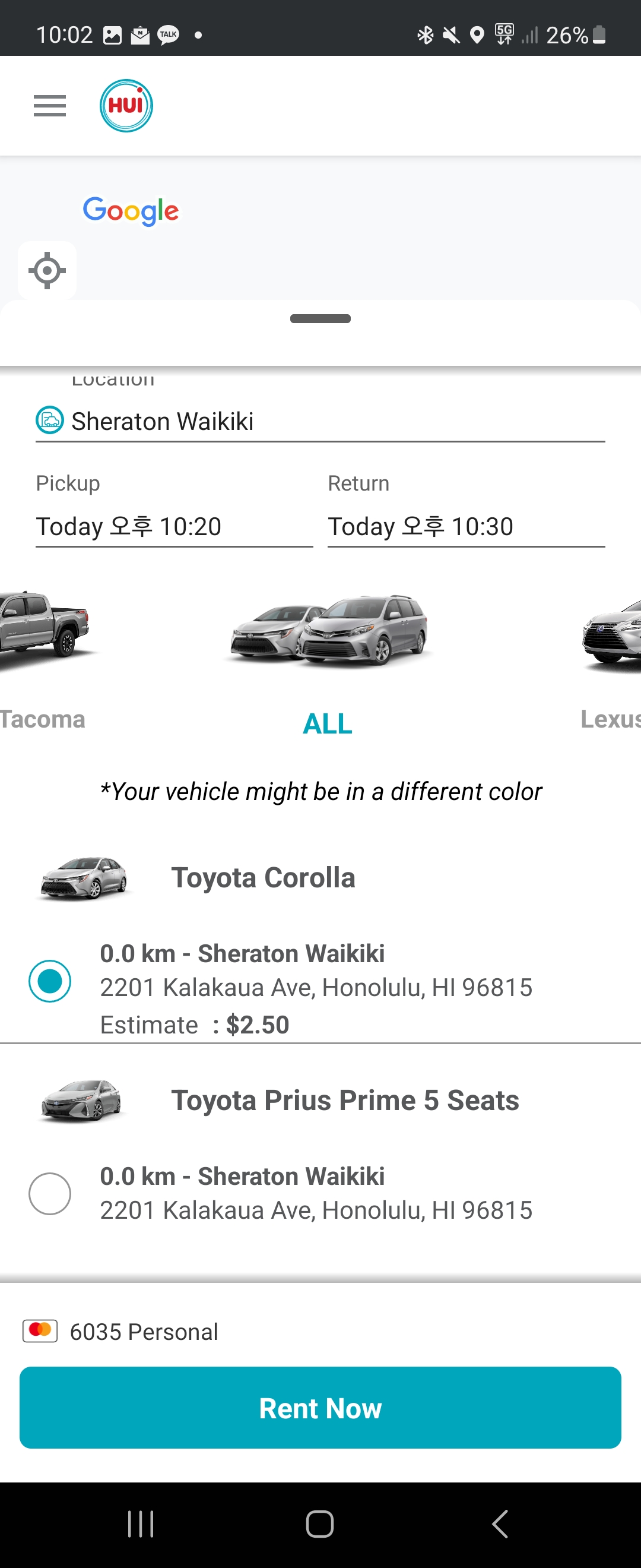 도요타랑 손 잡고 해서 도요타, 렉서스 차량만 대여할 수 있다.