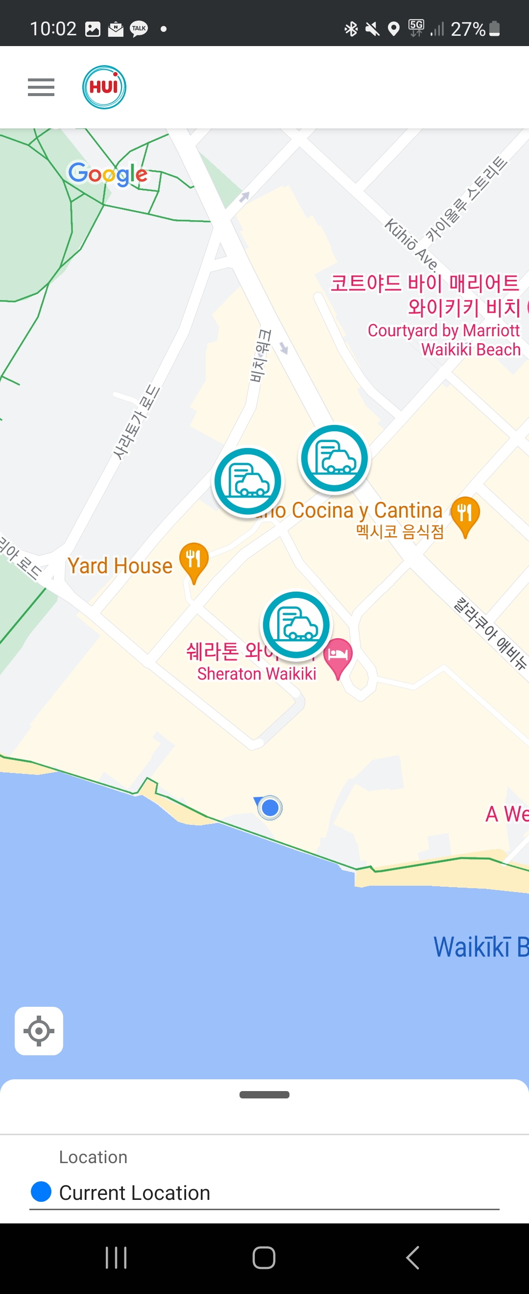 근처에 있는 HUI 차량을 나타내는 지도이며, 호놀룰루에서만 이용해봤는데 꽤나 많은 지역에 차량이 있다.