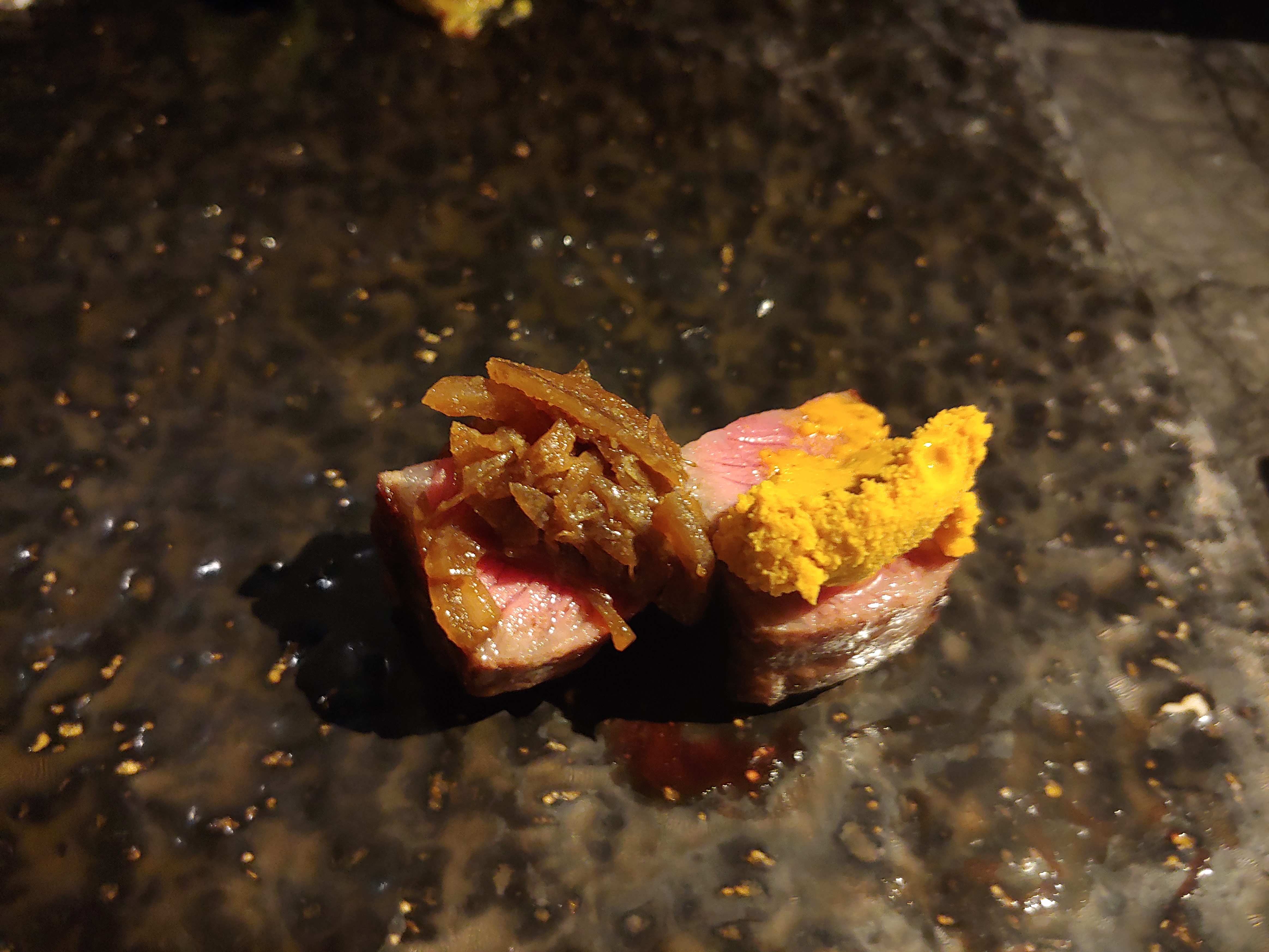 한우 우마카세라길래 고기만 계속 구워주는 줄 알았는데, 위처럼 고기 굽는 사이 사이에 요리가 나온다.