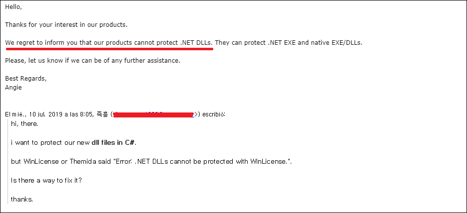 혹시 몰라서 WinLicense 제작사한테 물어봄.