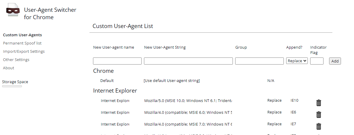 아래처럼 수동으로 User-Agent를 추가하는 것도 가능하지만 기존에 제공하는 User-Agent가 워낙 많아서 쓸 일이 없을 듯 하다.